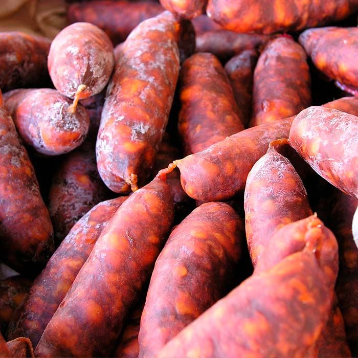 Chorizo curado de forma artesanal y tradicional con los mejores productos de la tierra.